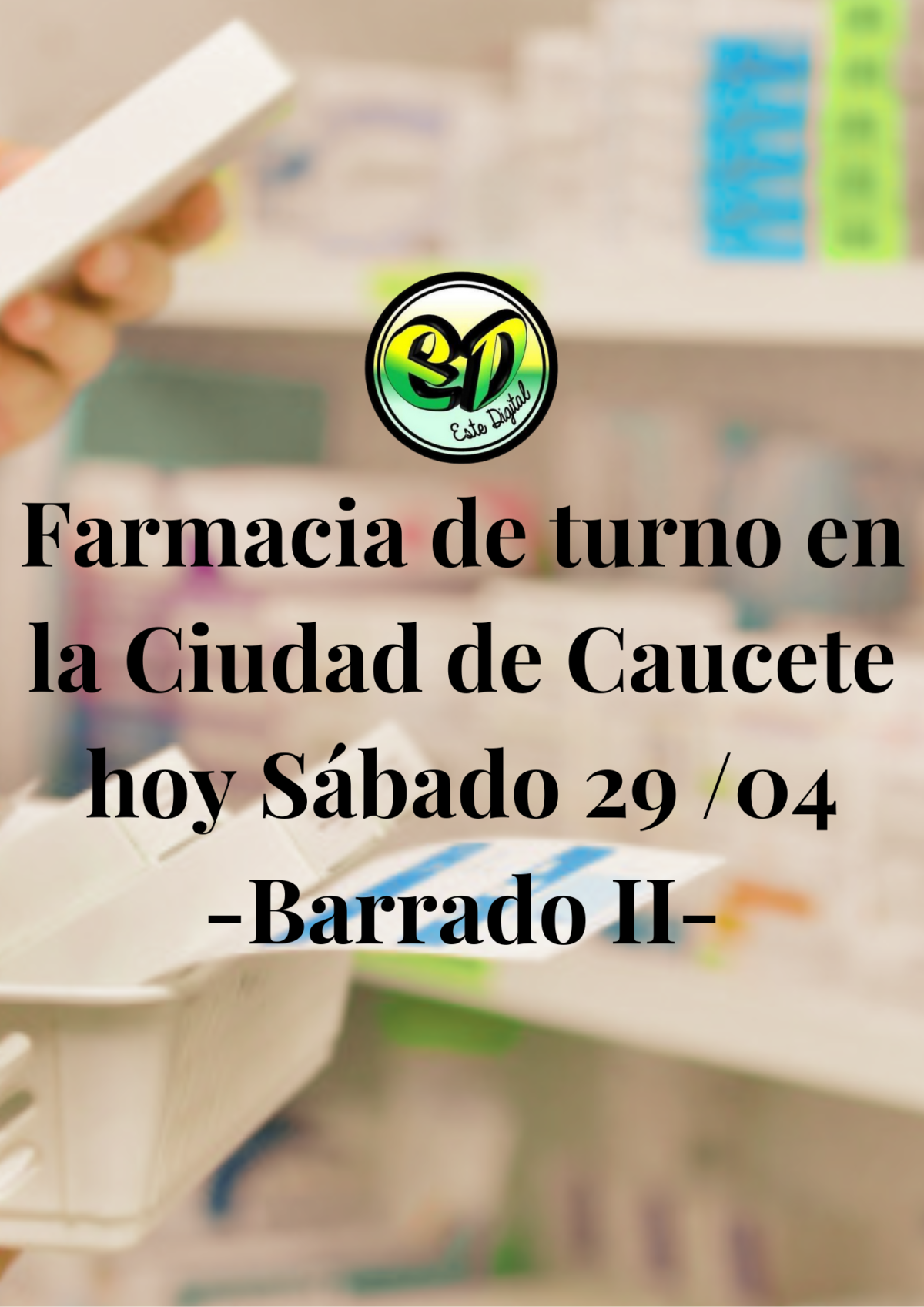 Categorías Salud Servicios Farmacia de turno Autor de la entrada Por Franco Escobar Fecha de publicación abril 29, 2023 En la ciudad de Caucete Etiquetas Este Digital, San Juan ← Andino en Chimbas y Rawson dijo que la gestión del gobernador Uñac tiene resultados visibles → A dos semanas de las elecciones en San Juan, cómo se posicionan los principales candidatos, según las encuestas