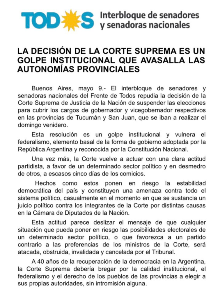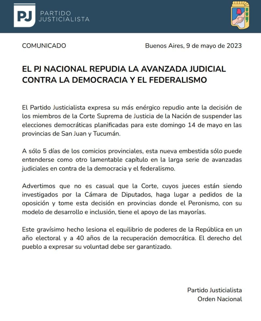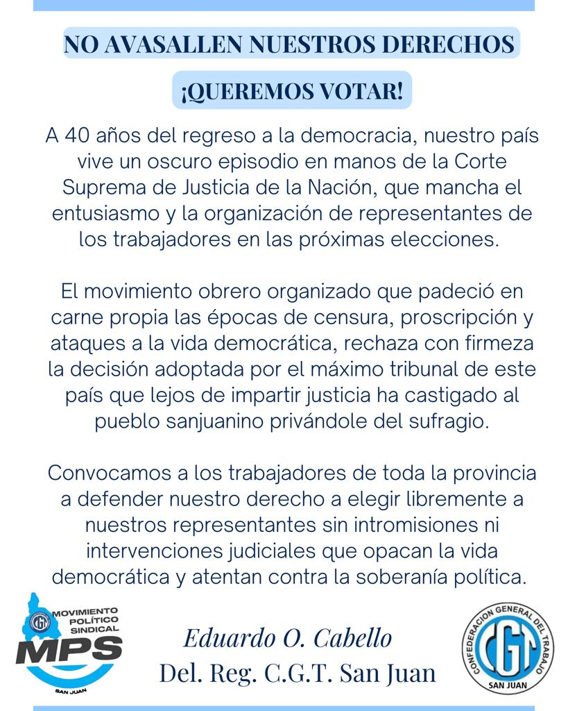 Luego de que la Corte Suprema de Justicia de la Nación decidiera suspender las elecciones a Gobernador y Vicegobernador en San Juan y Tucumán, varios referentes nacionales y gremiales se manifestaron a favor de Uñac y Manzur.
